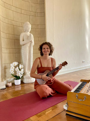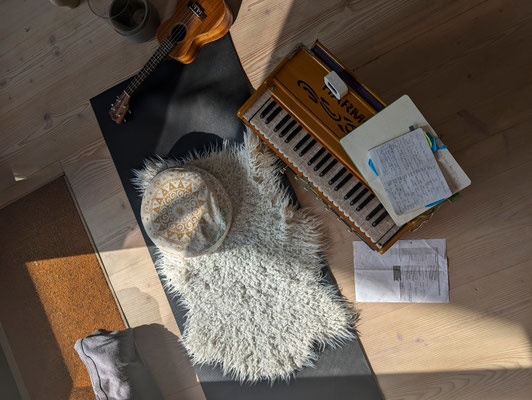 Während meiner Elternzeit habe ich zwei Yogalehrerausbildungen absolviert und auch das Harmonium spielen und Chanten für mich entdeckt, was zu einer großen Leidenschaft geworden ist.
