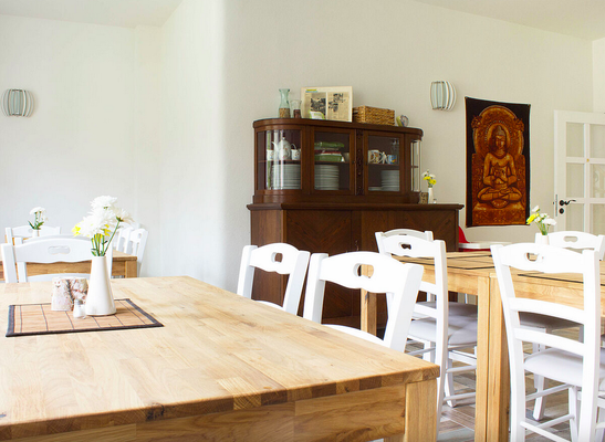Die Villa Viriditas ist ein Ort zum Krafttanken und Ruhefinden in der schönen Harzer Wildnis. Es ist ein kleiner Familienbetrieb und wir werden die einzige Gruppe vor Ort sein. Das Haus ist 2016 von innen komplett renoviert und umgebaut worden - Kalkputz, Lehmfarben und geölte Holzfußböden schaffen ein angenehmes Raumklima. Unser Trinkwasser wird durch eine Umkehr-Osmoseanlage aufbereitet. Die Zimmer sind weitestgehend strahlungsfrei und bewusst ohne TV und Radio gehalten, bei Bedarf gibt es ein Wlan-Netz in den Gemeinschaftsräumen.